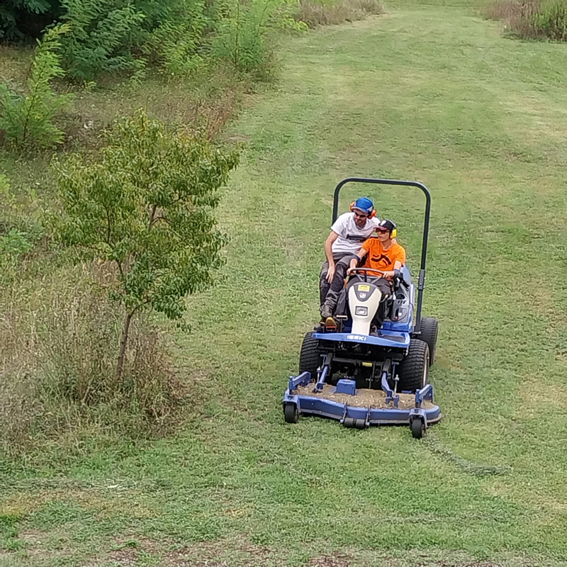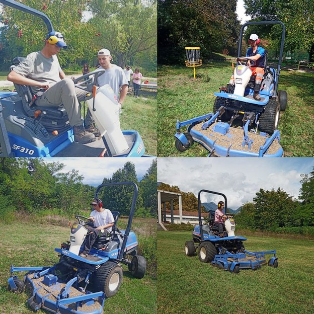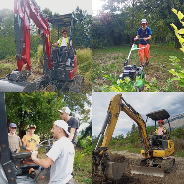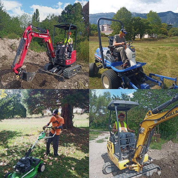 Encadrés par les apprenants de la formation, les stagiaires en situation de handicap ont pu participer à plusieurs ateliers techniques, notamment la prise en main de mini-pelles et de tondeuses autoportées.