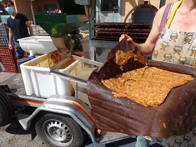 Au final, environ 1,2 tonnes de pommes et 300 kg de poires ont été transformés en 700 litres de jus. Merci à tous les participants !